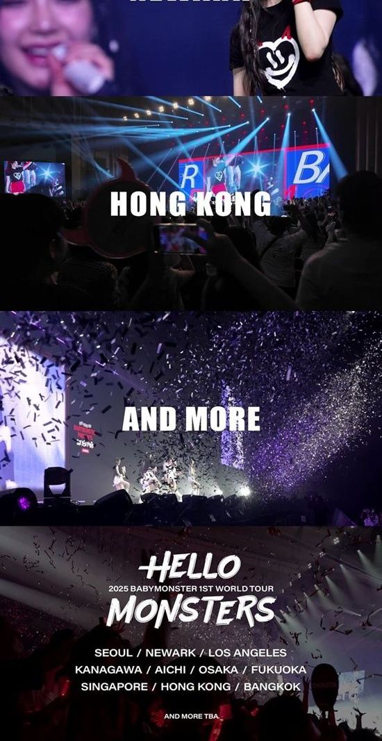베이비몬스터는 오는 25·26일 서울 KSPO DOME에서 '2025 BABYMONSTER 1st WORLD TOUR <HELLO MONSTERS> IN SEOUL'을 개최한다. 이어 미국 뉴어크·로스엔젤레스, 일본 카나가와·아이치·오사카·후쿠오카, 싱가포르·홍콩·방콕 등으로 발걸음을 옮긴다.