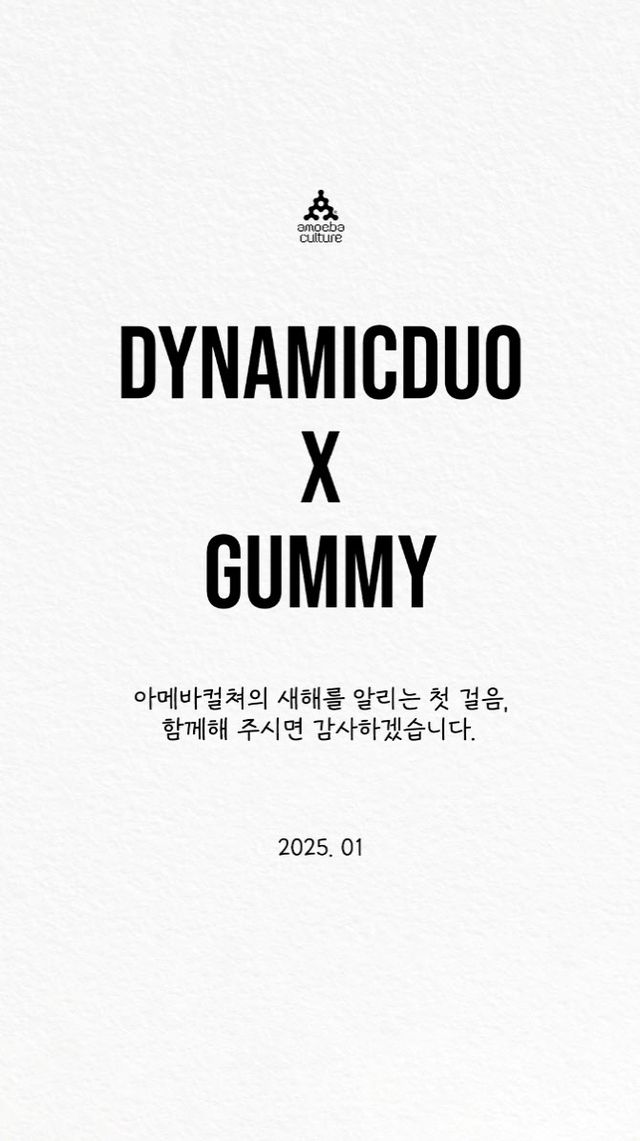 티저에는 다이나믹 듀오와 거미의 이름 아래 ‘아메바컬쳐의 새해를 알리는 첫 걸음, 함께해 주시면 감사하겠습니다. 2025. 01’이라는 문구가 담겼다. 신곡명과 정확한 발매일시는 아직 공개되지 않은 가운데, 다이나믹 듀오와 거미가 새해를 여는 컬래버레이션을 통해 보여줄 케미스트리에 기대감이 높아진다.
