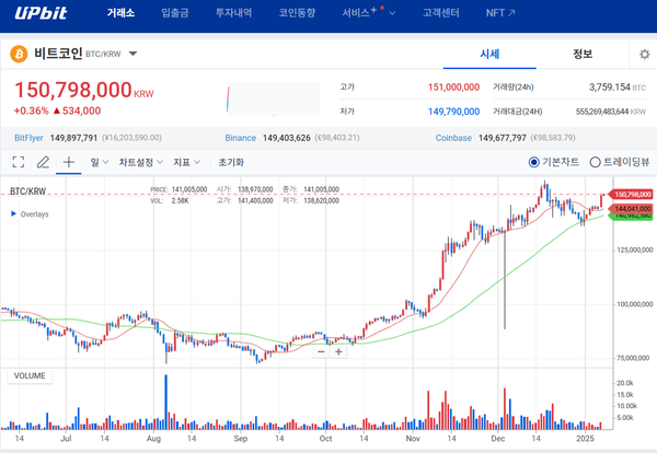 미국 상·하원 합동 의회가 도널드 트럼프 대통령의 공식 당선 확정 소식에 비트코인이 1억5000만원을 재돌파했다.