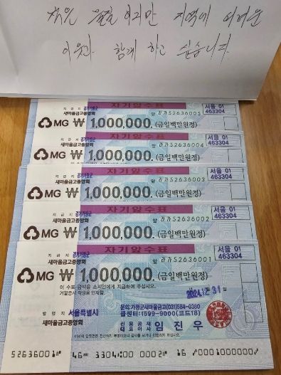 기부자가 전달한 봉투에는 “작은 물질이지만 지역의 어려운 이웃분들과 함께하고 싶습니다”라는 따뜻한 메시지가 담긴 편지와 함께 100만 원권 수표 5장이 들어 있었다.