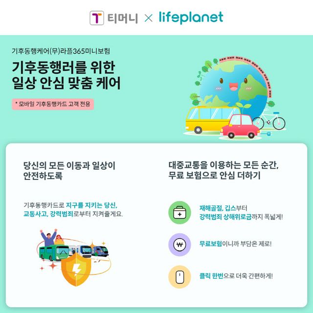 이번에 추가된 기후동행카드 미니보험 서비스는 특정위험을 선택적으로 보장해주는 미니보험(소액단기보험) 형태다. 대중교통이 주 이동 수단인 기후동행카드 이용자들에게 발생할 수 있는 △재해골절(치아파절 제외)진단비 △깁스(부목 제외)치료비 △강력범죄피해 상해위로금 등이 주요 보장내용이다.