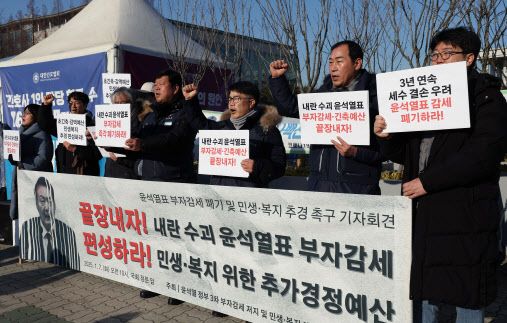 이날 발언자로 나선 이성원 한국중소상인자영업자총연합회 사무총장은 민생·복지 부분의 예산 확충이 불가피하다고 주장했다. 이 사무총장은 “내란사태가 연말특수만을 기다린 소상공인과 자영업자의 기대에 찬물을 끼얹었다”고 말했다. 그는 “코로나19와 인플레이션이 악화하는 상황에서도 미국과 유럽, 일본에서는 과감한 재정 투입을 통한 일자리 지키기를 강조했다”며 “이제라도 여당은 내란 동조 행위를 멈추고 야당과 힘을 모아 민생위기를 극복하는 데 최선을 다해야 한다”고 목소리를 냈다.