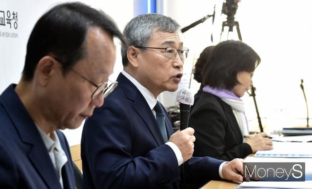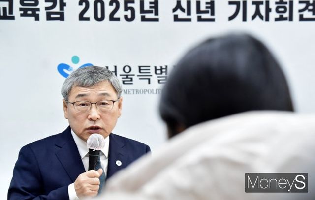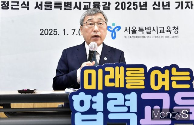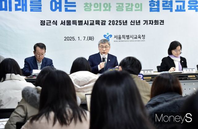 정근식 서울시교육감이 7일 서울 종로구 신문로2가 서울시교육청에서 진행된 미래를 여는 창의와 공감의 협력교육 '2025 신년 기자회견'에 참석, 신년사와 함께 서율 교육 주요업무를 발표하고 있다.