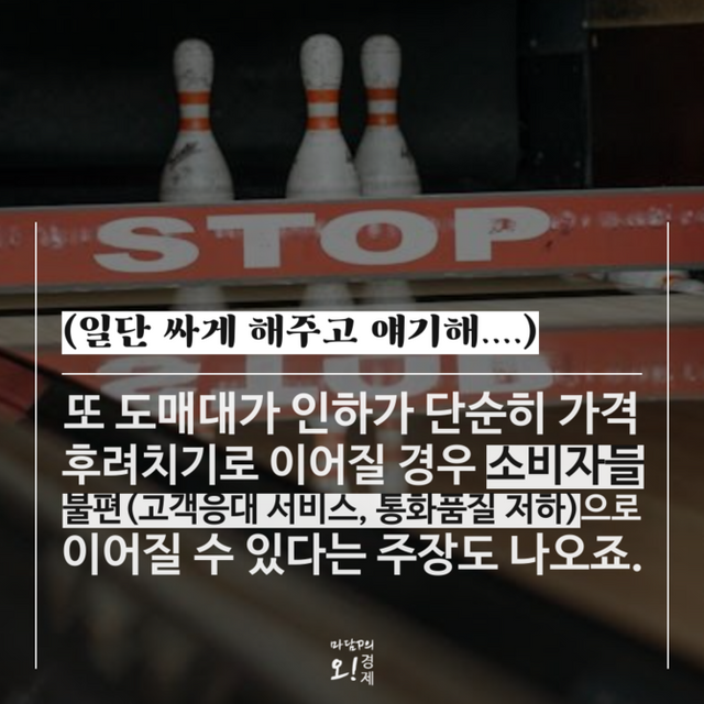 또 도매대가 인하가 단순히 가격 후려치기로 이어질 경우 소비자들 불편(고객응대 서비스, 통화품질 저하)으로 이어질 수 있다는 주장도 나온다.