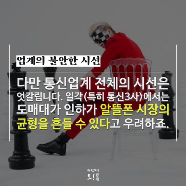 다만 통신업계 전체의 시선은 엇갈리는데. 일각에서는 도매대가 인하가 알뜰폰 시장의 균형을 흔들 수 있다고 우려한다.