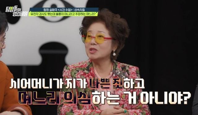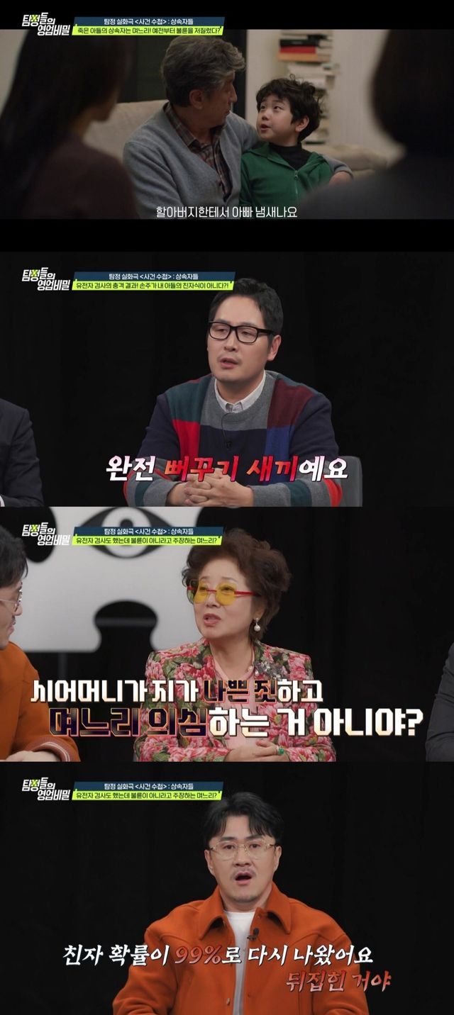 결과는 충격적이게도 '불일치' 판정이 나왔다. 사실을 알게 된 시어머니는 며느리를 찾아가 모든 걸 폭로하고 소송을 예고했다. 선우용여는 "죽은 아들이 시아버지 아들이 아닌 것 아니냐"며 경험에서 우러나오는 추리력을 빛냈다.