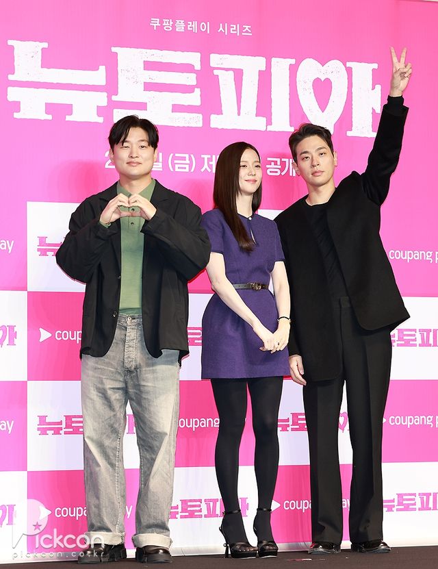 7일 서울 영등포구 콘래드 호텔 그랜드볼룸에서는 쿠팡플레이 새 시리즈 '뉴토피아(Newtopia)' 제작발표회가 열려 연출을 맡은 윤성현 감독과 배우 박정민, 블랙핑크 지수가 참석했다.