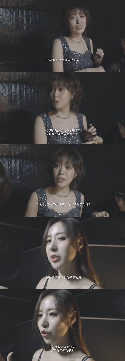 심은진은 "진짜 너무 힘들었다. 20대 때는 우리가 콘서트를 3시간씩 하루에 2회를 했는데 이거 10분짜리로 이렇게 힘들어 할 일인가 싶다"라며 지난 세월을 실감했다.