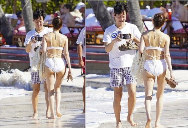 매체에 공개된 사진에서 이정재는 흰색 반소매 티셔츠와 반바지를 입고, 수영복을 입은 임세령 부회장을 카메라에 담고 있는 모습이 포착됐다.
