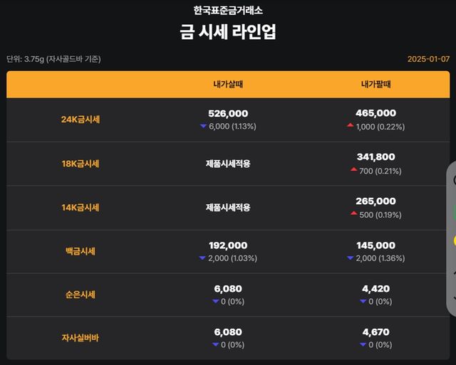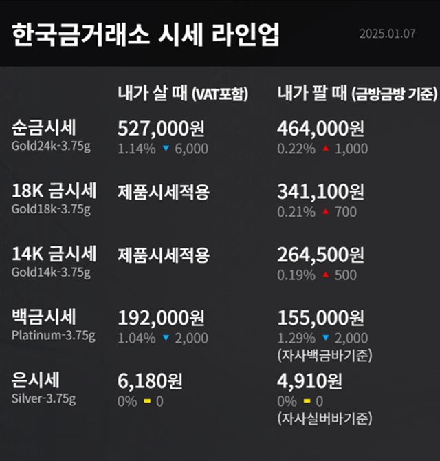 순금(24K) : 매입가 52만 7000원 / 매도가 46만 4000원