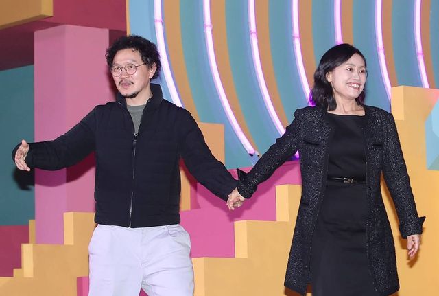 배우 양동근과 강애심(오른쪽)이 9일 서울 중구 동대문디자인플라자(DDP)에서 열린 넷플릭스 오리지널 시리즈 '오징어 게임' 시즌2 월드 프리미어 이벤트 행사에 참석하고 있다 / 뉴스1