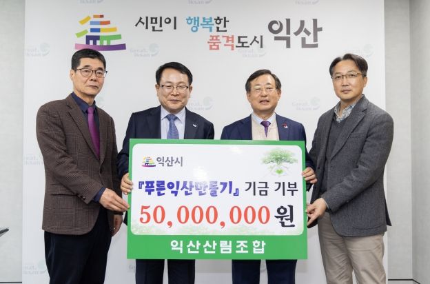 이날 익산산림조합과 ㈜티와이엠은 각각 5,000만 원과 1,300만 원을 기탁했다. 성금은 ㈔푸른익산가꾸기 운동본부에 기탁된 후 나무식재에 활용될 예정이다.