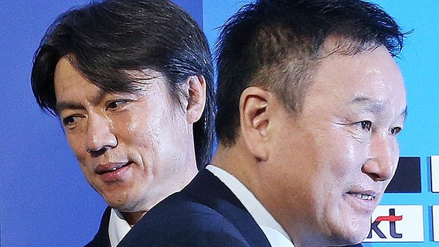 지난 2014년 동반 사퇴를 발표한 홍명보 당시 축구대표팀 감독과 허정무 당시 축구협회 부회장 / 뉴스1