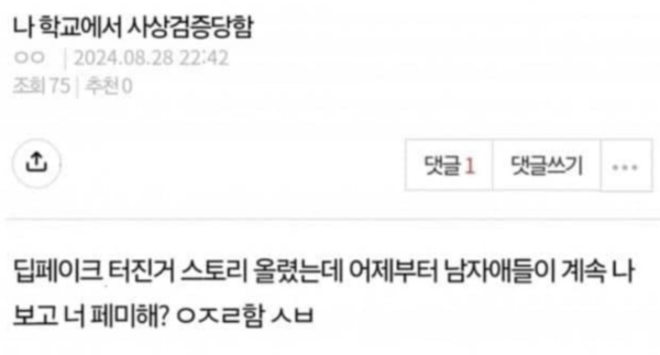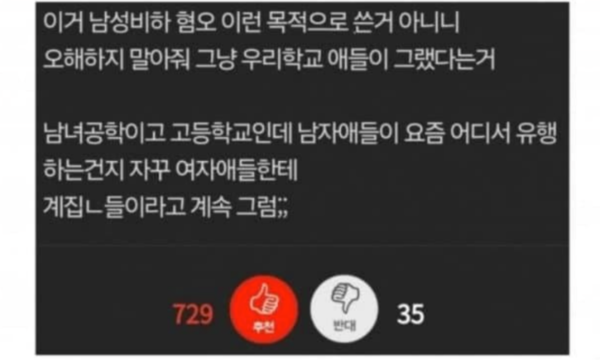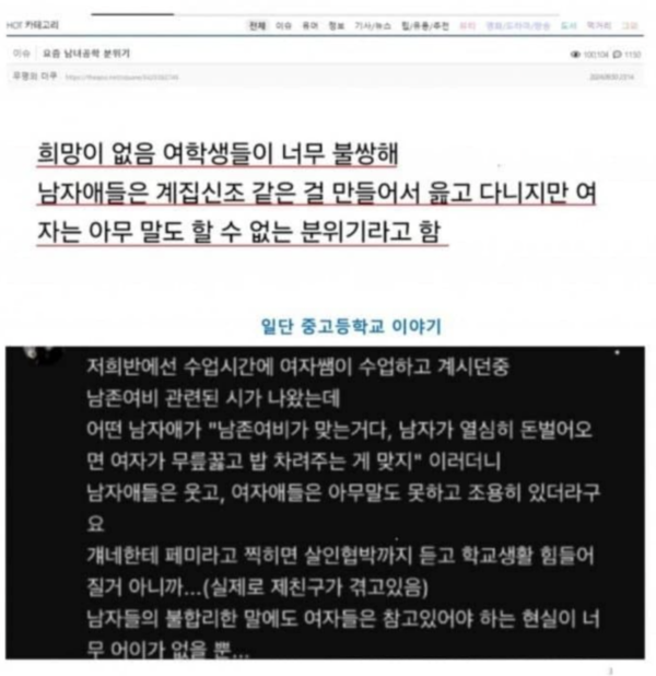 일부 여학생들은 이러한 혐오 문화에 두려움을 느껴 학교에 다니기 힘들다고 토로하기도 했다.