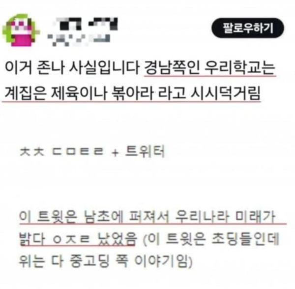 이런 왜곡된 인식은 학교 현장에서 그대로 나타나고 있다.