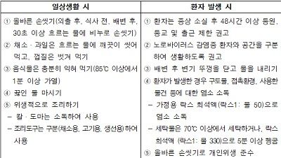 (표)노로바이러스감염증 행동수칙