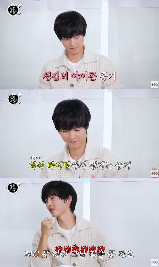 이날 이희준은 송중기의 배려심 많은 면모를 언급하며 "회식 타이밍까지 챙긴다"라고 언급했다. 이에 장도연이 "회식 1, 2, 3차까지 다 짜신다는데"라며 운을 띄웠다. 송중기는 "스태프들 분위기가 약간 다 힘들어한다 싶으면 '회식으로 단합을 해야하나?' 생각한다"라며 입을 열었다.