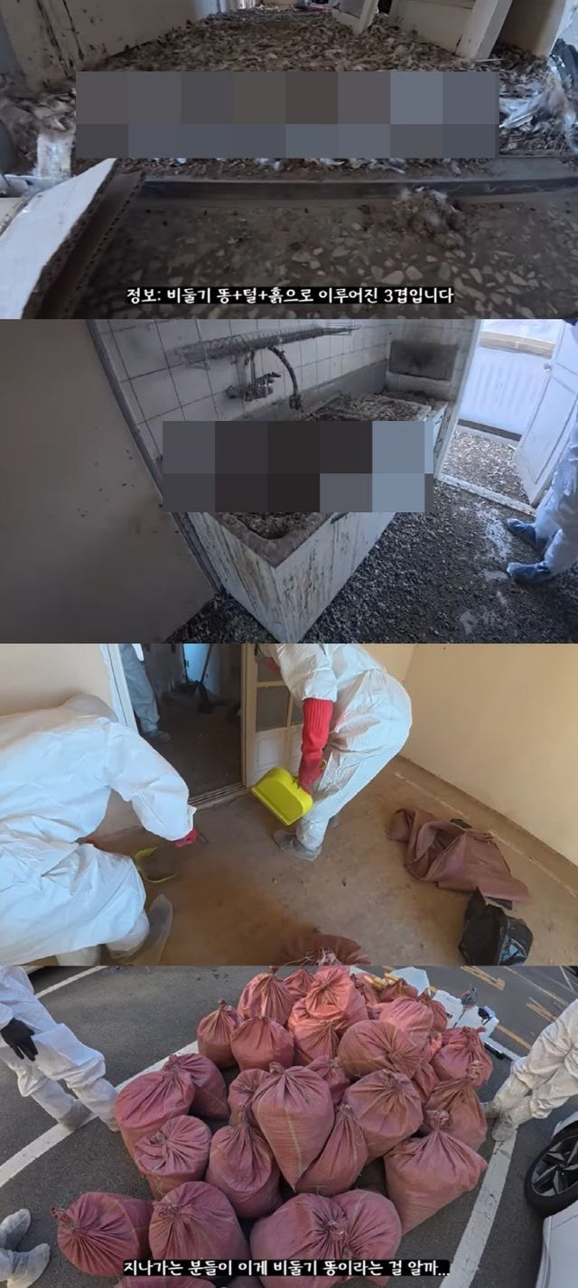 업체 측은 “비둘기 배설물을 받아주는 곳이 없어 친한 폐기물 업체에 따로 부탁해서 버렸다”며 “배설물을 퍼내는 작업만 했다. 변기, 벽지, 세면대, 장판 등은 철거한 뒤 리모델링될 것으로 보인다”고 했다.