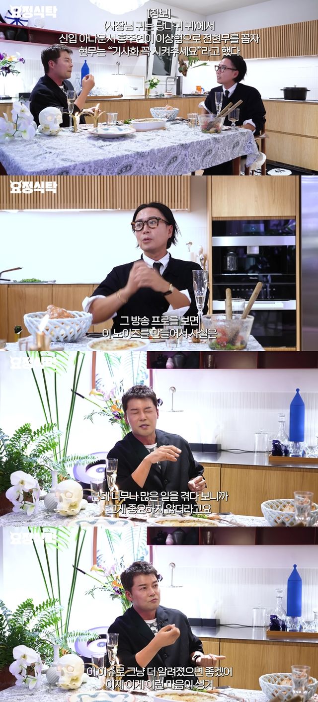 정재형은 최근 '사장님은 당나귀 귀'에서 불거진 전현무와 홍주연 아나운서의 열애설에 대해 언급하며 "그 프로그램을 보지 않고 (기사를)보면, 누군가 또 만나고 있는 거 같다는 느낌이 들었다. '얘 또 누굴 만나는 거야?'라고 생각했는데, 노이즈를 만들어서 프로그램을 만들고 있는 것 같다"고 이야기했다.