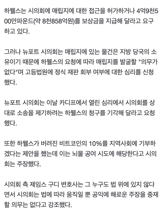 영국인 근황 : 애끓는 소송 중임 (그와중에 비트코인 총액은 1조원이 됨)