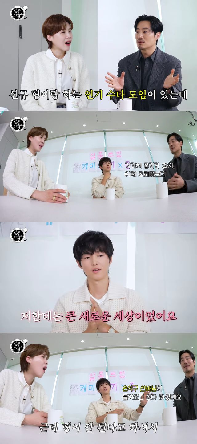 그러면서 송중기는 “최근에 (이희준) 형한테 들었는데 손석구 선배님이 들어오고 싶다고 했다”며 “그런데 형이 안 된다고 했다. 형이 너무 밉다”고 고백했다. 이에 이희준은 원활한 진행을 위해 인원을 제한했다고 밝혔다.