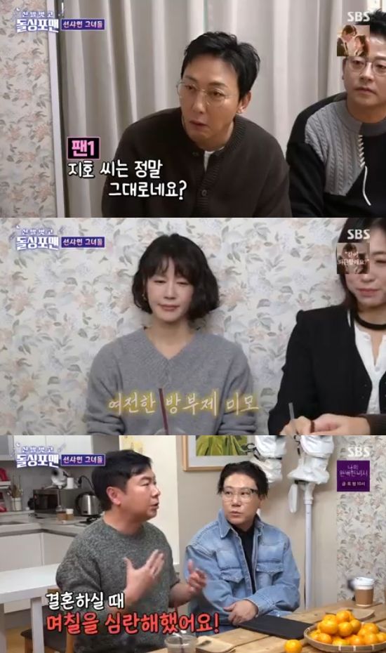 이날 원조 CF퀸 김지호의 등장에 '돌싱포맨' 멤버들은 미소를 감추지 못했다. 탁재훈은 "지호 씨는 그대로다"라면서 과거와 변함없는 미모를 칭찬했다.