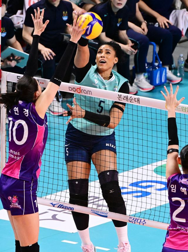 다시 팽팽한 승부를 만든 GS칼텍스는 15-15에서 뚜이가 김지원과 속공 득점을 합작하며 득점 루트를 추가했다. 16-16에선 상대 범실, 17-16에선 실바의 오픈 공격, 18-16에선 역시 실바가 김다은의 오픈 공격을 가로막으며 3점 차로 앞서갔다.