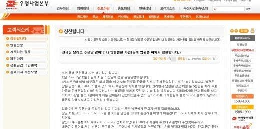 B씨는 고마운 마음에 A씨에 사례를 하려 했지만 A씨는 이를 거절했다고 한다. 그 대신 B씨는 1월 8일 우정사업본부 홈페이지 ‘칭찬합니다’ 게시판에 글을 올렸고, 이 일이 다수 언론사에 보도되면서 A씨의 선행이 전국적으로 알려지게 됐다.