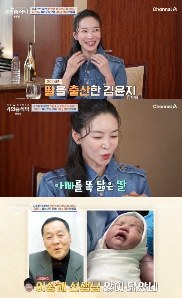 6일 방송된 채널A '절친 토큐멘터리-4인용식탁'에 강주은의 초대로 등장한 김윤지는 딸을 보고 싶어 하는 오현경과 안문숙의 요청에 딸 사진을 공개했다. 그동안 김윤지는 개인 채널을 통해 딸의 뒷모습만 공유해왔다.