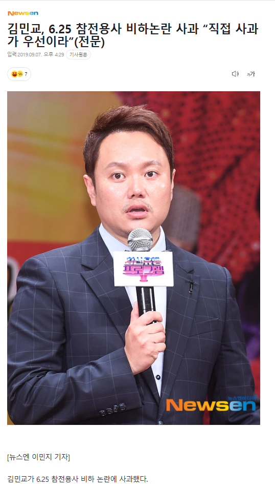 참전용사를 군무새라며 비하한개그로 욕쳐먹었던 김민교는