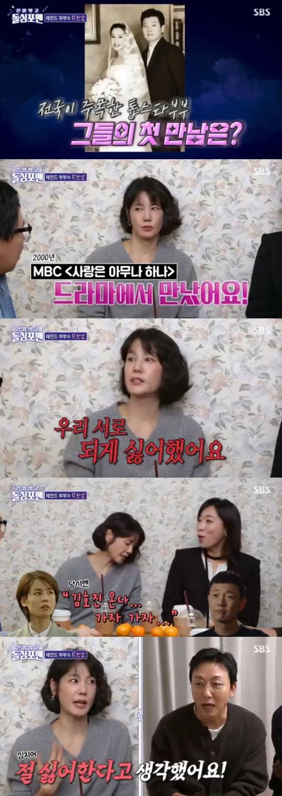 김지호는 "그래서 회식 때 '오빠는 내가 그렇게 마음에 안 들어요? 촬영 하면서 이런 대접은 처음이네'라고 했었다. 그렇게 덤볐더니 오빠는 그게 너무 귀여웠다더라"고 했다. 김호진은 그런 김지호의 말에 "왜 그렇게 생각해? 나는 너 싫어한 적 한 번도 없다"고 답했었다고.