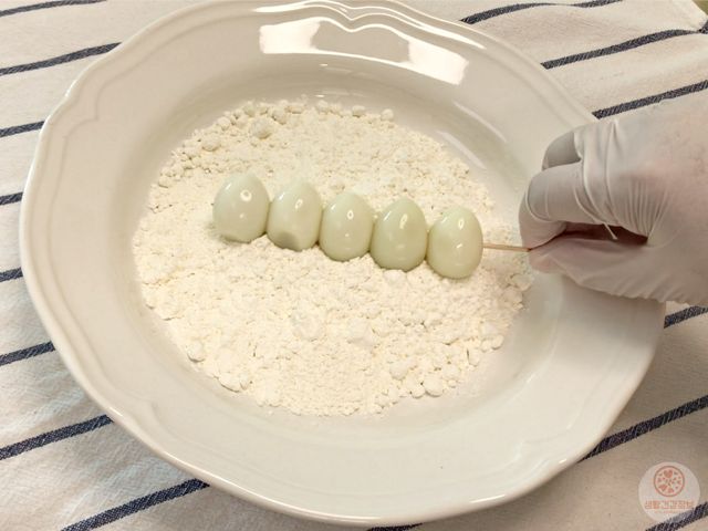 이제 메추리알에 바삭한 튀김옷 입혀볼게요.