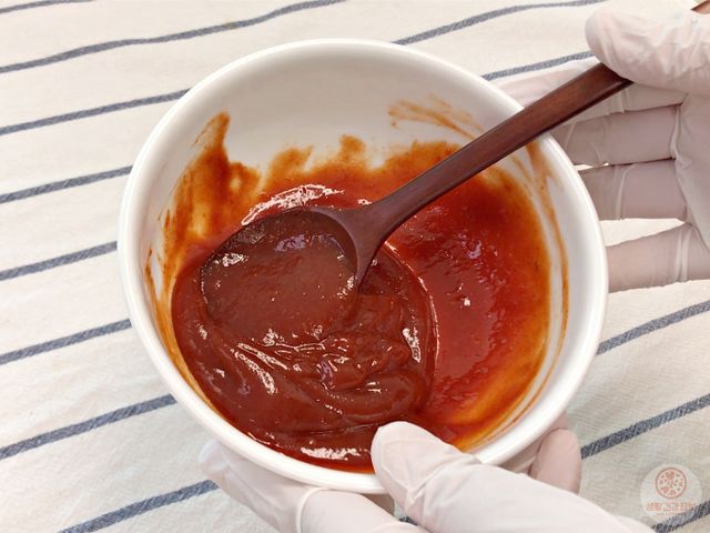 고추장1, 케찹2, 설탕1, 올리고당1 골고루 섞으면