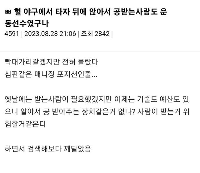 헐 야구에서 앉아서 공받는사람도 운동선수였구나