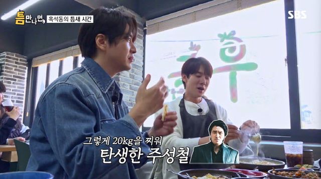 이준혁은 테이블이 가득 차자 행복한 미소를 지으며 먹방을 시작했다. 이준혁은 “먹는 걸 진짜 좋아한다. 피자 두세 판을 먹는다”며 “그래서 참는 거다. 한 번 터지면 과자도 여섯 봉지씩 먹는다”고 말했다.
