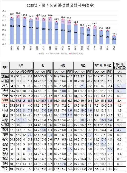 | ▲ ‘23년 일·생활 균형 지수 지자체별 점수 |