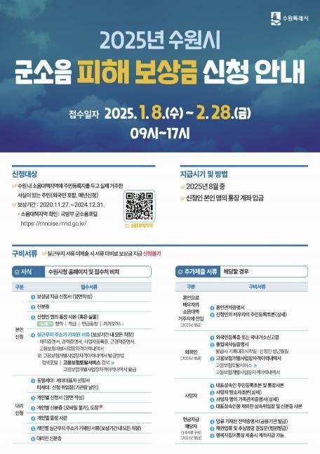 [와이뉴스] 수원시가 2월 28일까지 ‘2025 군소음 피해보상금’ 신청을 받는다.