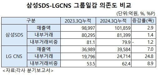 ◇ 삼성SDS 매출 80% 그룹의존 ‘양날 검’…LG CNS는 60% 그쳐