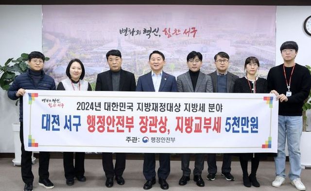 [파이낸셜경제=김예빈 기자] 대전 서구는 2024년도 제17회 대한민국 지방재정대상 지방세 세입증대 분야에서 행정안전부 장관상을 수상하고 재정인센티브로 지방교부세 5천만 원을 확보했다고 8일 밝혔다.