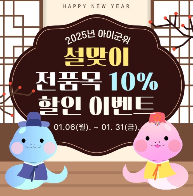 설맞이 할인 이벤트는 1월 6일부터 31일까지 진행되며, 모든 상품을 10% 할인된 가격으로 판매한다.
