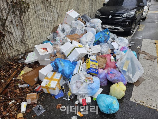 지난 1일부터 한남동 관저 인근에서 탄핵 찬반 집회가 열리며 한남동 주민들은 ‘집회로 인해 생활이 무너지고 있다’며 울상을 짓고 있었다. 지난 4일과 6일 양일간 찾은 한남동은 탄핵 찬반 집회에서 쏟아져 나온 쓰레기가 거리 곳곳에 쌓여 있었다. 쓰레기 더미에는 각 집회에서 사용된 손피켓부터 집회 참석자들이 노숙 집회를 하며 먹었던 라면, 음료수 등 쓰레기가 이곳저곳에 나뉘어 있었다. 담배꽁초 역시 거리 곳곳에서 쉽게 찾아볼 수 있었다.