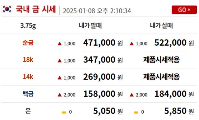 순금(24K) : 매입가 52만 2000원 / 매도가 47만 1000원