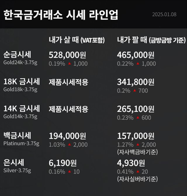 순금(24K) : 매입가 52만 8000원 / 매도가 46만 5000원