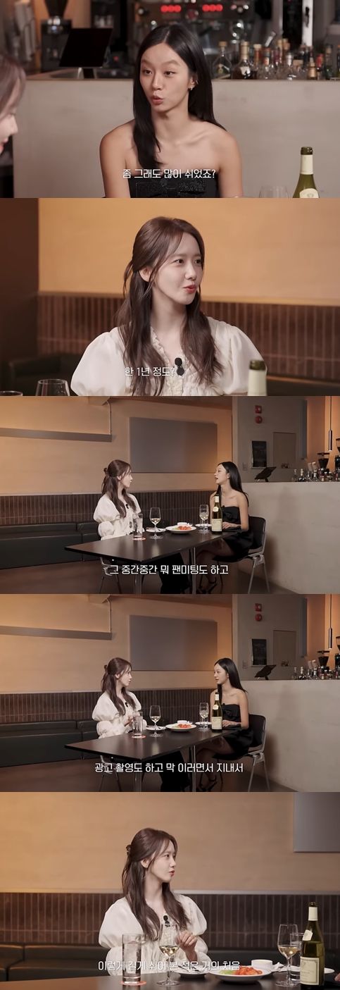 혜리는 "좀 그래도 많이 쉬었지 않냐"라고 질문했고, 윤아는 "한 1년 정도 쉬었다. 그 중간에 팬미팅도 하고 광고 촬영도 했다"라고 답변했다.