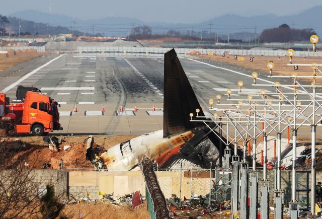 지난해 12월29일 오전 전남 무안국제공항에서 태국 방콕발 제주항공 7C2216편 여객기가 활주로에 동체착륙을 하던 중 활주로를 벗어나 구조물에 충돌하는 사고가 발생했다. ⓒ 연합뉴스