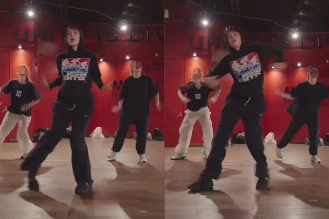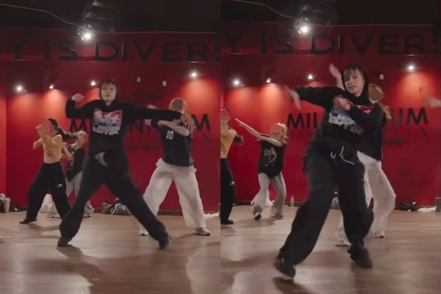 검은색 후드티에 트레이닝복을 입은 채 다른 댄서들과 함께 현란한 발놀림으로 춤을 추는 모습이 시선을 모은다.