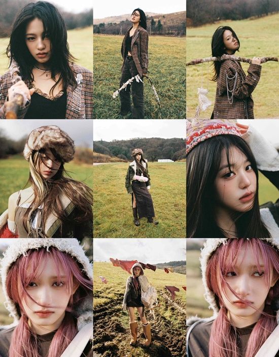 먼저, 안유진은 체크무늬 재킷과 데님 바지를 입고 활과 나뭇가지를 든 채 카메라를 응시했고, 자연과 완벽히 어우러지는 분위기로 시선을 집중시켰다.