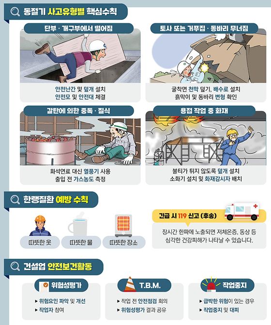 동절기 건설현장 핵심안전수칙(정보그림=고용노동부) |