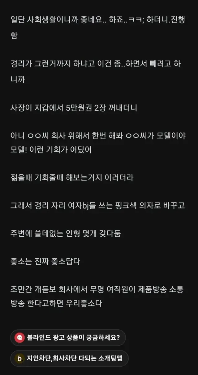 경리를 제품 홍보모델로 쓰는 좋소.blind,,