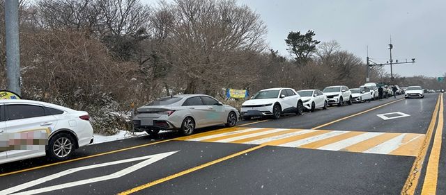 이날 이곳에서 교통업무를 수행하던 자치경찰 관계자는 "겨울철만 되면 관광객들이 1100고지에 많이 찾아오면서 불법 주·정차 문제가 끊임없이 발생하고 있다"라면서 "안전사고 위험도 있어 매일 오전 7시부터 오후 5~6시까지 교대로 현장근무를 하고 있는데 문제 해결은 역부족인 상황이다"라고 말했다.